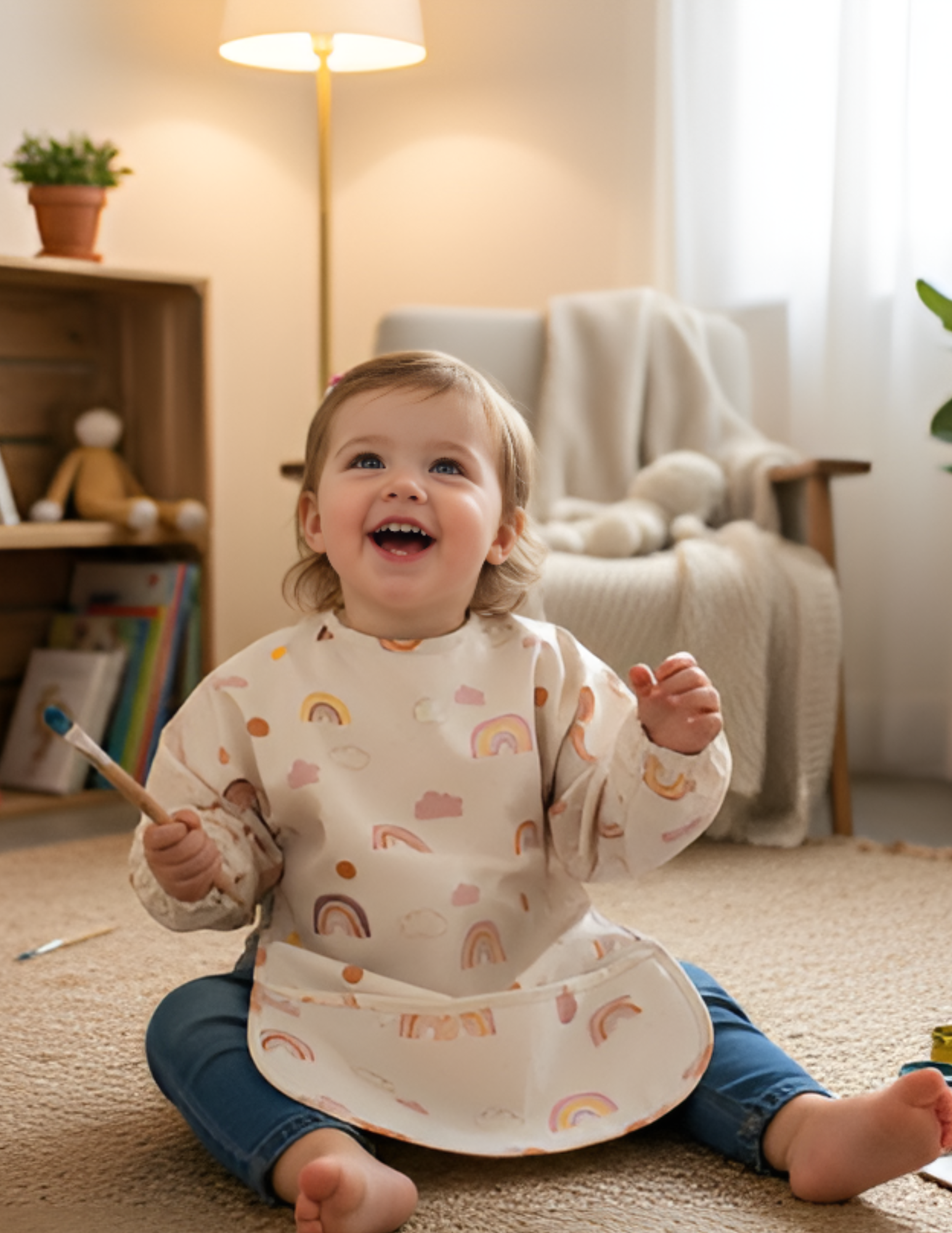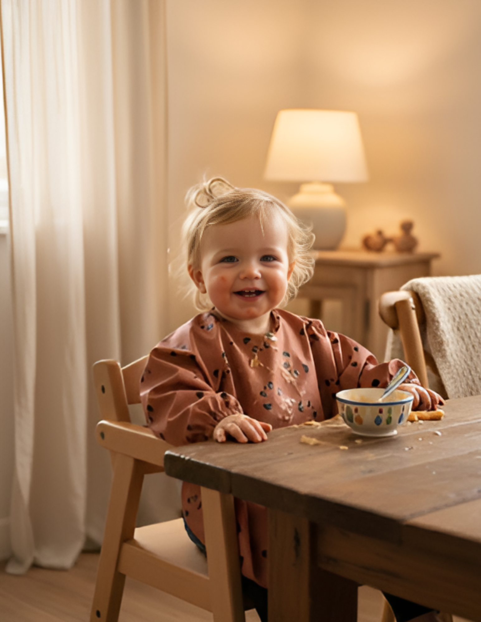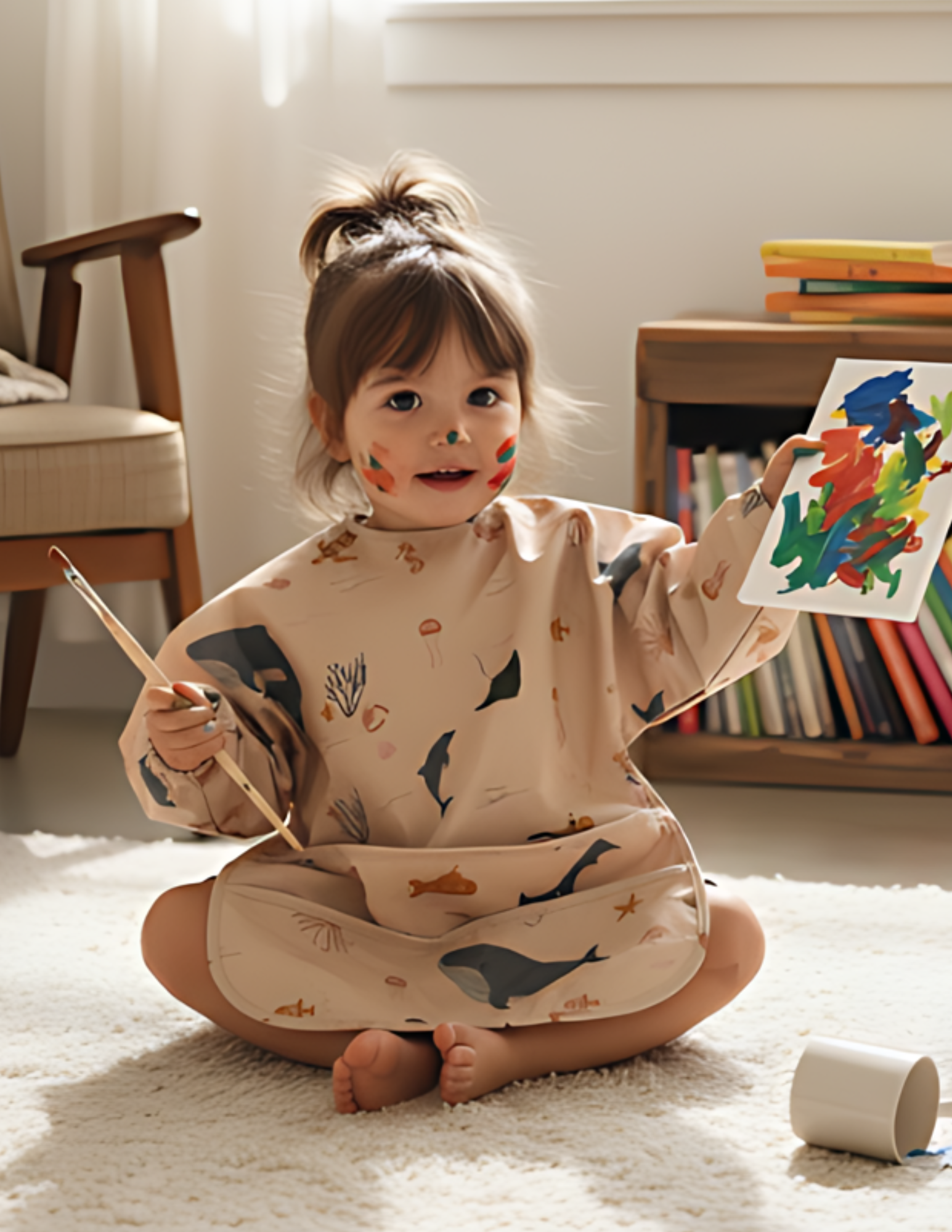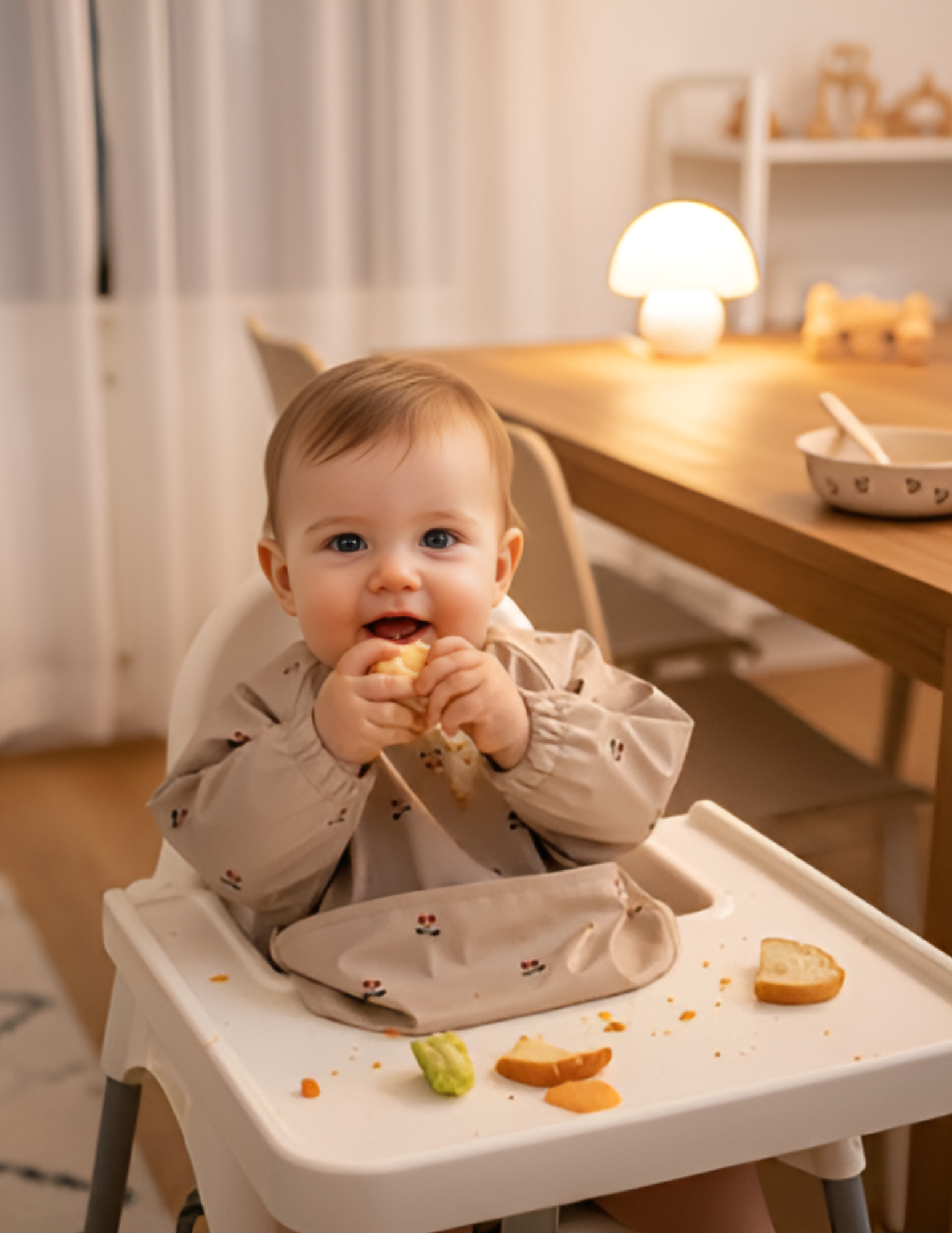Faites des repas et des moments de jeu sans stress avec notre tablier BloomBib™ . Conçu pour les petits explorateurs, ce tablier offre une protection intégrale à une esthétique moderne et minimaliste .