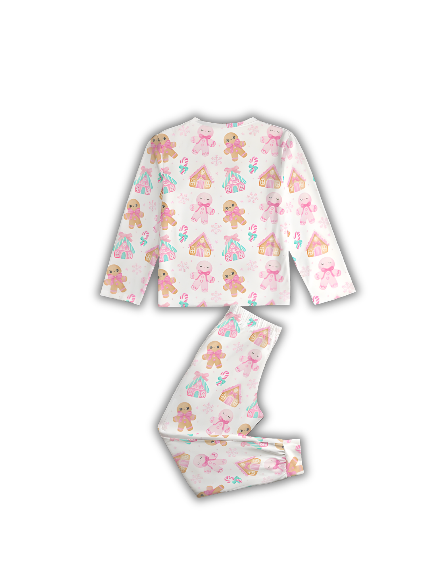 - Imprimé festif intégral avec des bonshommes en pain d'épice, des cannes de Noël et des flocons de neige