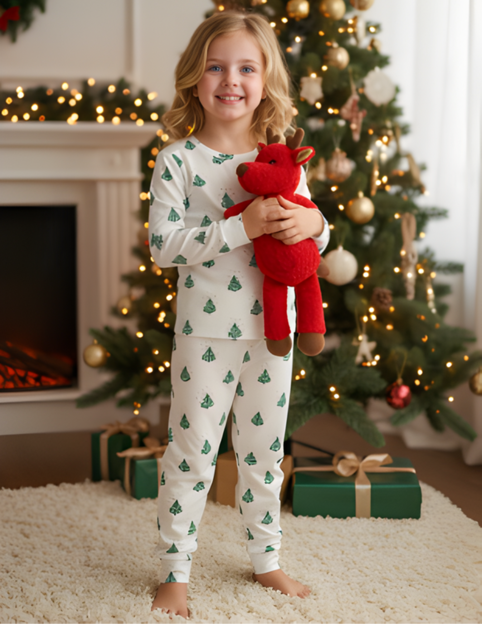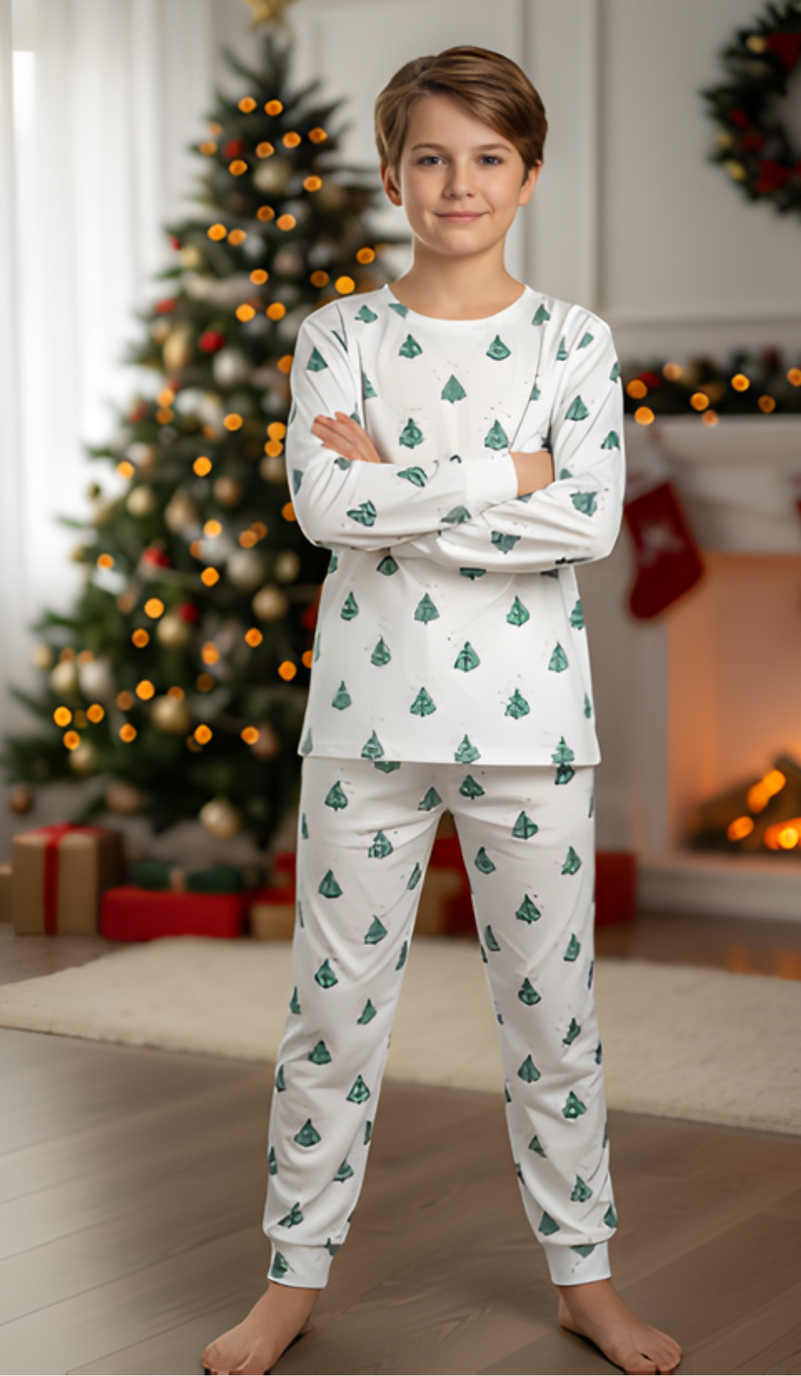 Fait à partir de 95 % polyester et 5 % spandex , cet ensemble deux pièces comprend un haut à manches longues à col rond et un pantalon assorti, avec des motifs de Noël signés Bloom. Léger, respirant et doux pour la peau, ce pyjama est idéal pour se coller au chaud ou profiter des matins festifs au pied du sapin.