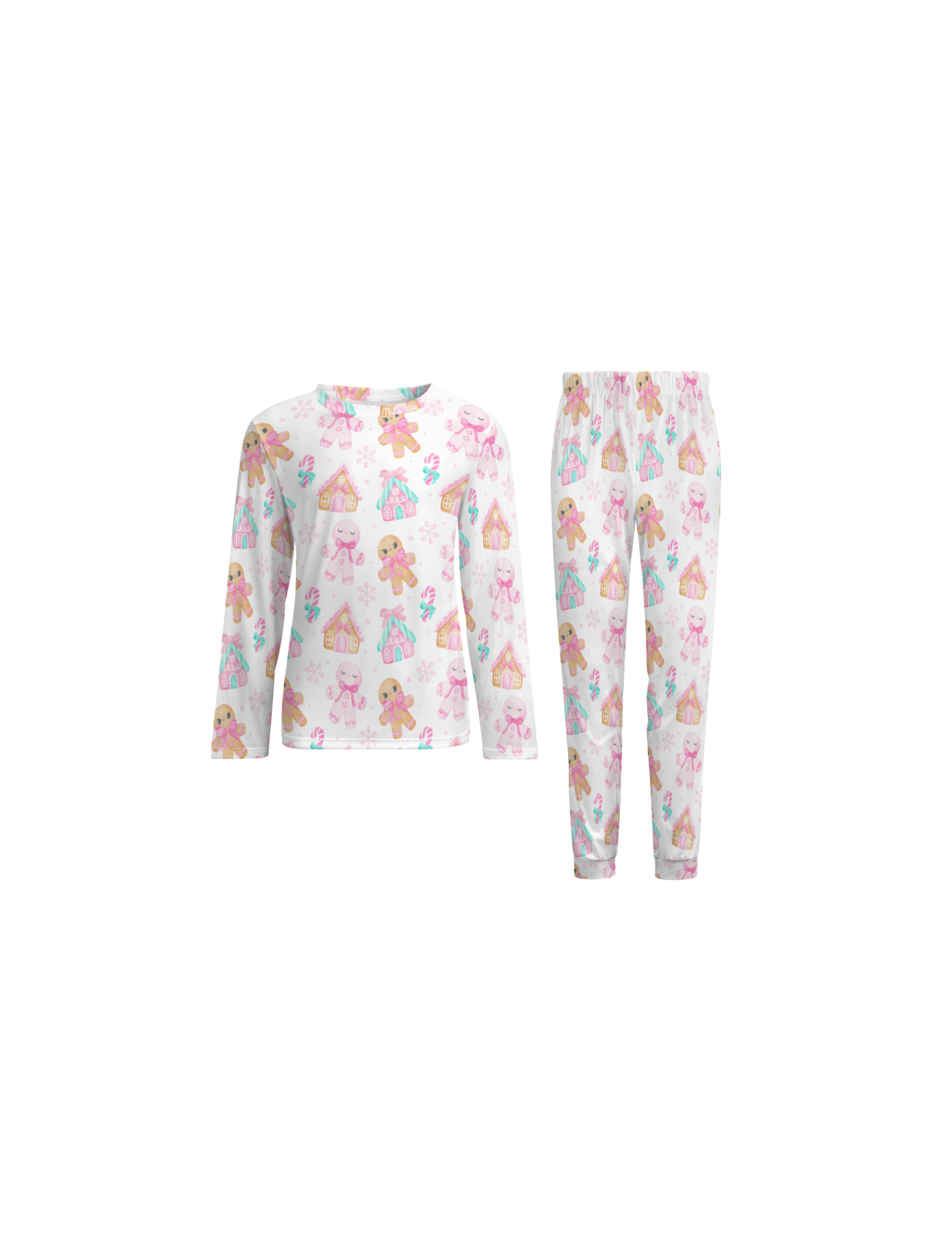 - Imprimé festif intégral avec des bonhommes en pain d'épices, des cannes de Noël et des flocons de neige