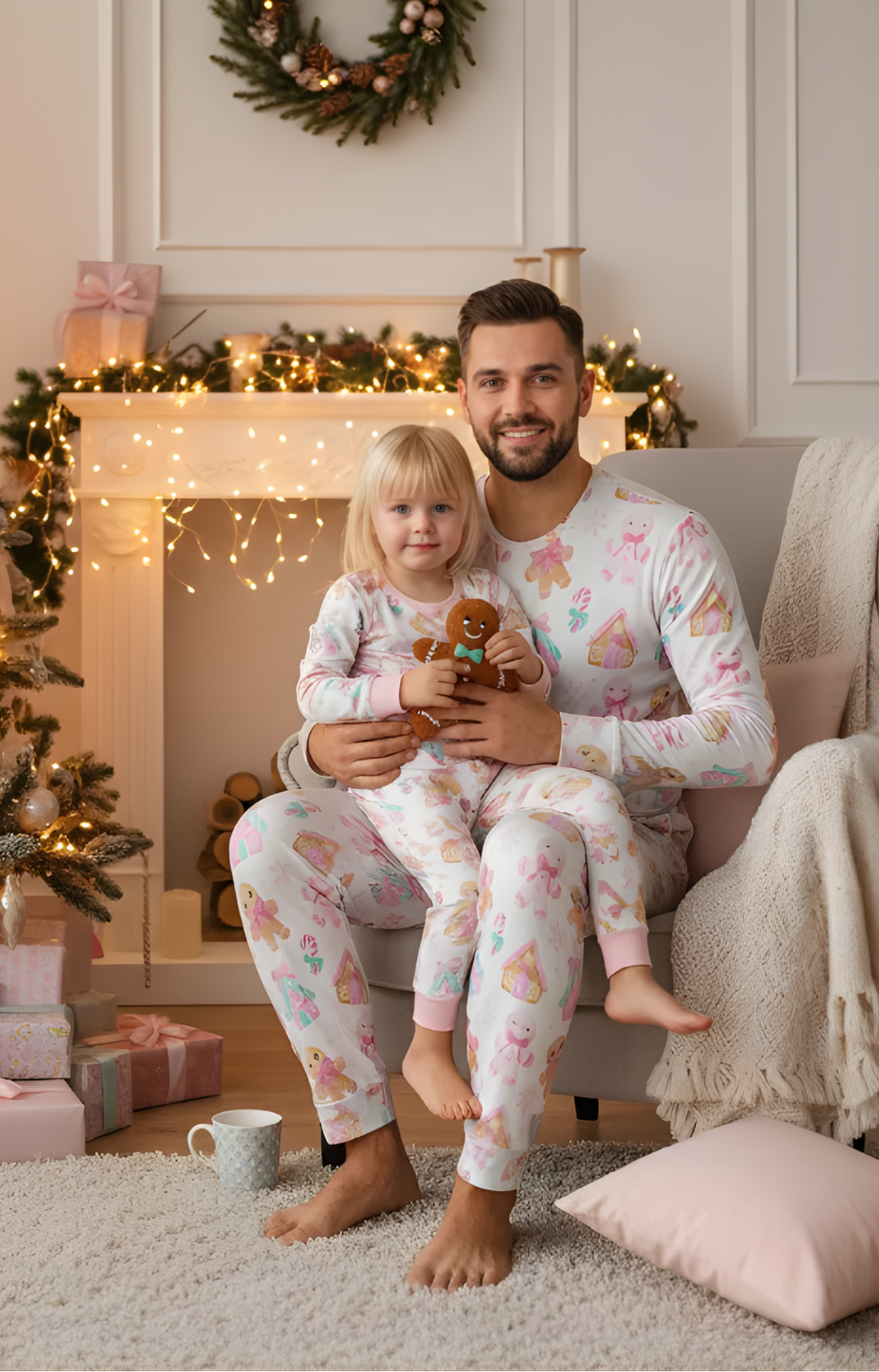 Fait de 95 % polyester et 5 % spandex, cet ensemble deux pièces comprend un haut à manches longues à col rond et un pantalon assorti à motifs de Noël signés Bloom. Léger, respirant et doux pour la peau, ce pyjama est idéal pour se coller au chaud ou profiter des matins festifs au pied du sapin.