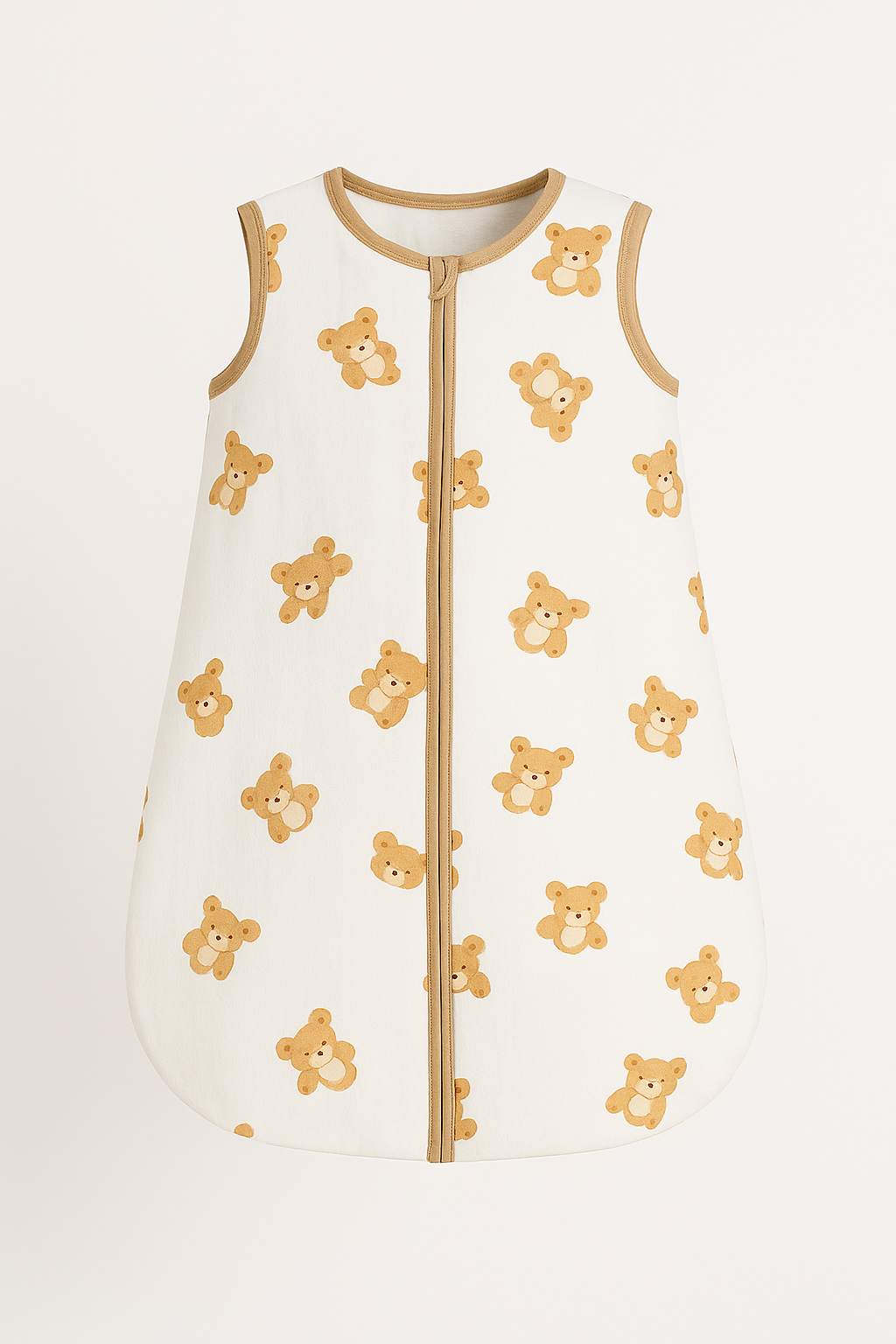 Each sleeping bag features a unique, playful pattern— making bedtime a delightful adventure. The front zipper allows for easy diaper changes, while the soft cotton fabric ensures comfort and breathability.